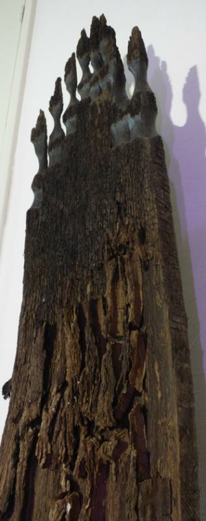 Hout van een archeologische opgraving bij Veldhoven werd beschikbaar gesteld aan kunstenaars. Ik maakte uit het hout van Middeleeuwse waterputten een serie Waternimfen. Niet echt figuren uit de Middeleeuwen. Maar toch kan ik me voorstellen dat uit de Waterputten bij mistig weer vrouwfiguren opstegen. Lieflijk maar ook rauw, mysterieus. Met de harde kern van het eikenhout en de kwetsbare buitenkant, die ik onaangetast heb gelaten.
